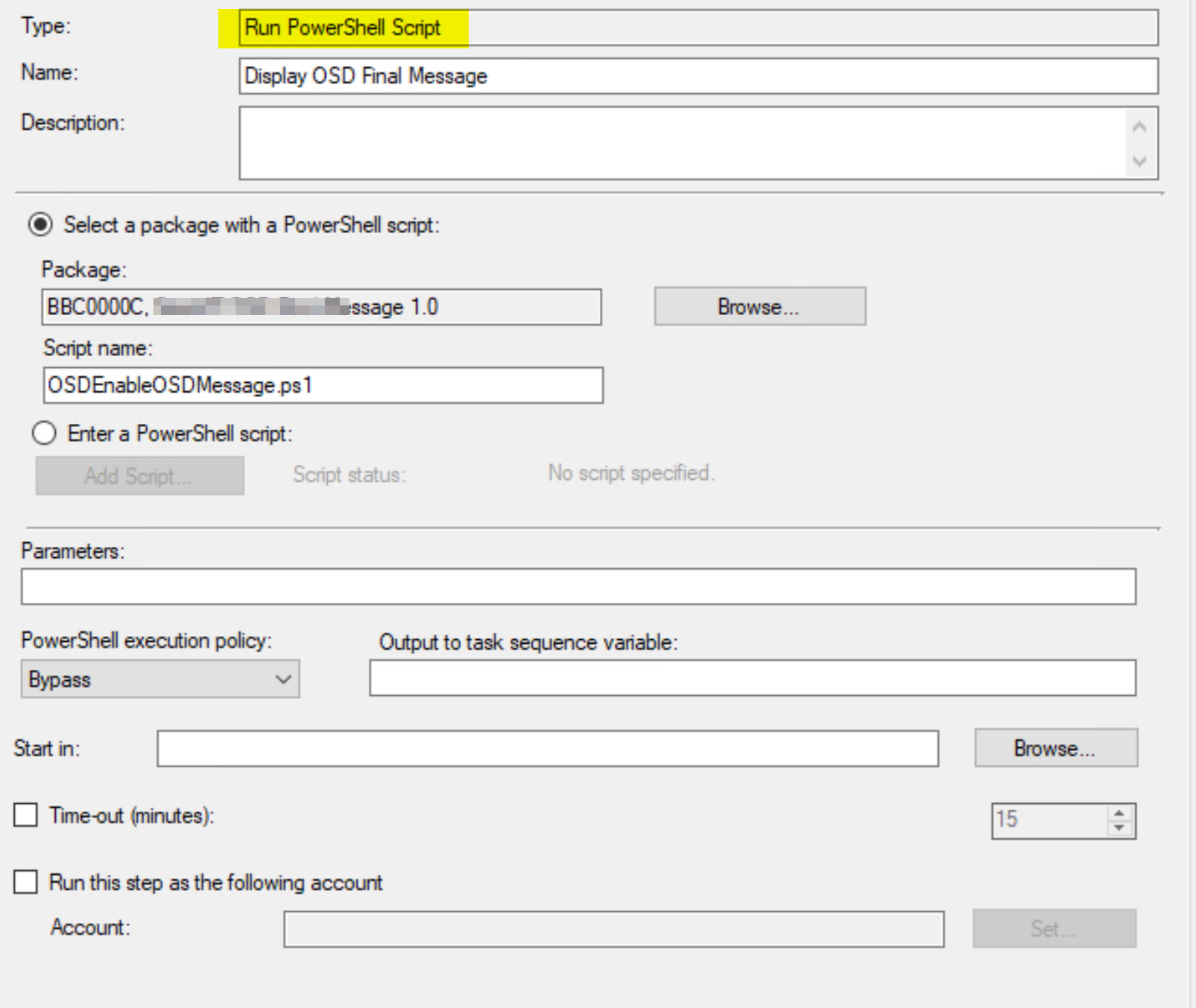 TS Action "Run Powershell Script" with the option "Run the script from a package". Execution Policy "Bypass"