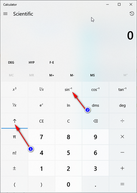 On the left side of the Windows Calculator, click the Arrow key, that will switch the functions so you will see the Inverse functions