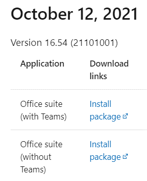 - Go to install Office from this page: Update history for Office for Mac - Office release notes | Microsoft Docs. The version 16.54 is the latest version.
