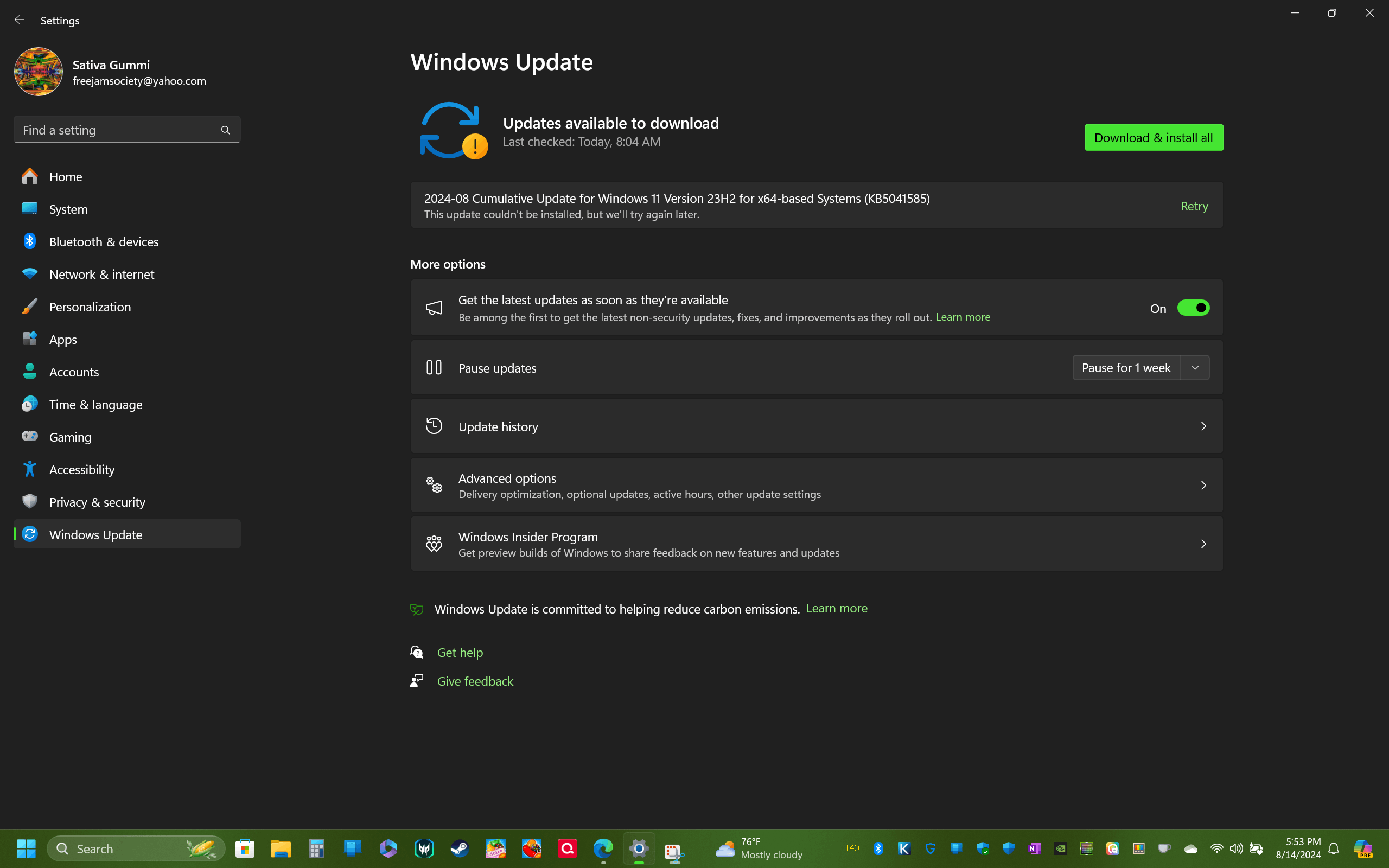 **Here's a direct download link of KB5041585 from Microsoft Update Catalog. Download and install the update manually.