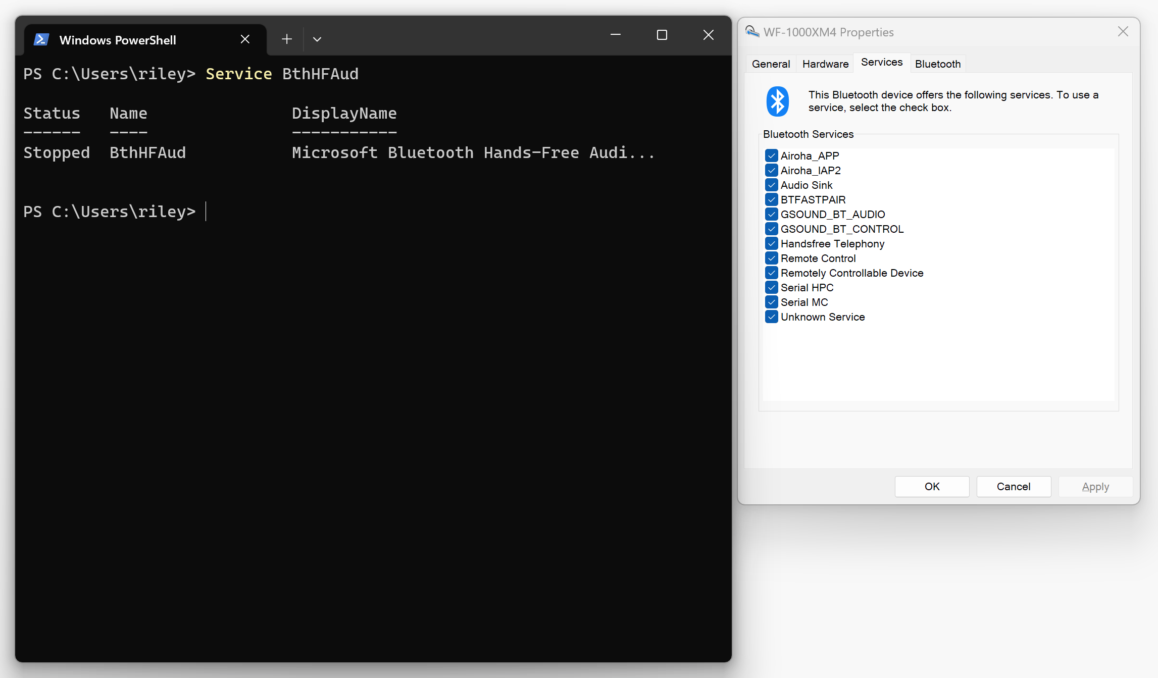 Another way to avoid the hands-free telephony issue is disabling the hands-free microphone in audio settings.
