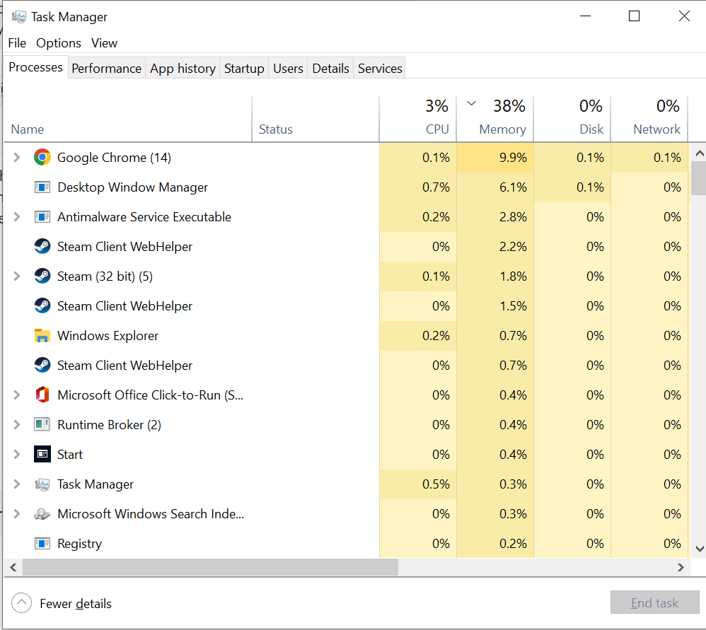 Hello! Just very recently all my games on my PC have slowed down in performance a lot. Over the past few days I have experienced various levels of lag across the whole computer but today it seems to be running fine with the exception of any game I play. Below is provided a screenshot of my current task manager while writing this post as well as an internet speed test. If anyone could give me advice that would be greatly appreciated!