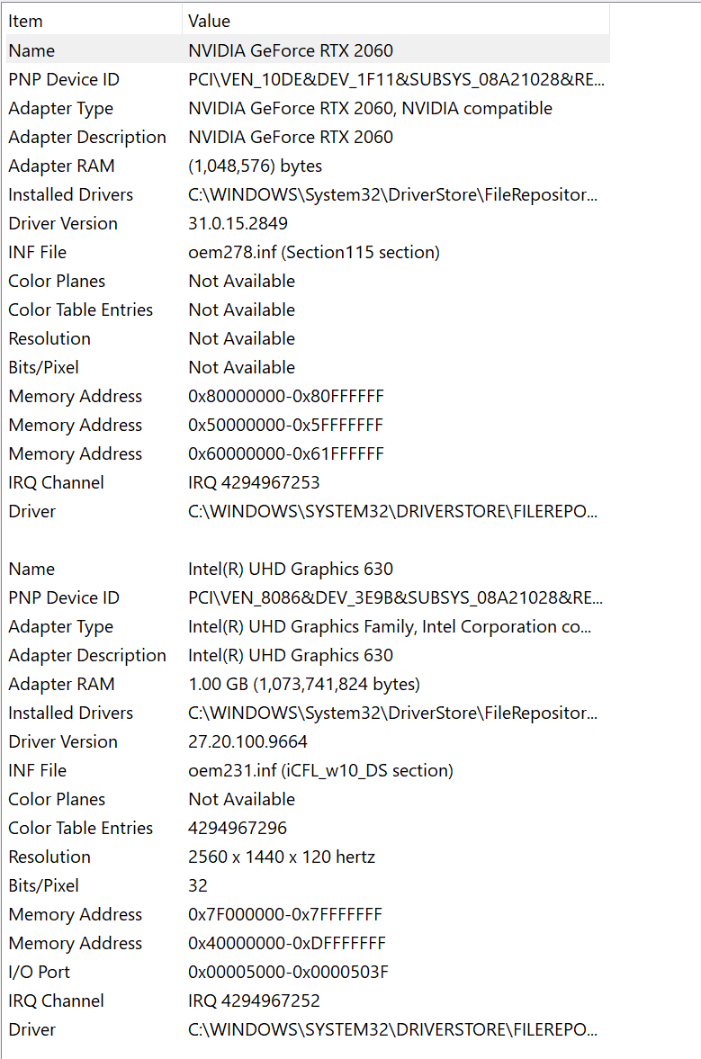 Thank you for taking time to help me! Below I have included as follows: a screenshot of the System Summary tab of the Windows System Information application, and a screenshot of the Display tab of the Windows System Information application. I have tested Minecraft, American Truck Simulator, and Hogwarts Legacy and I have noticed fairly significant decreases in gameplay performance in all of them as compared to just a few days ago.