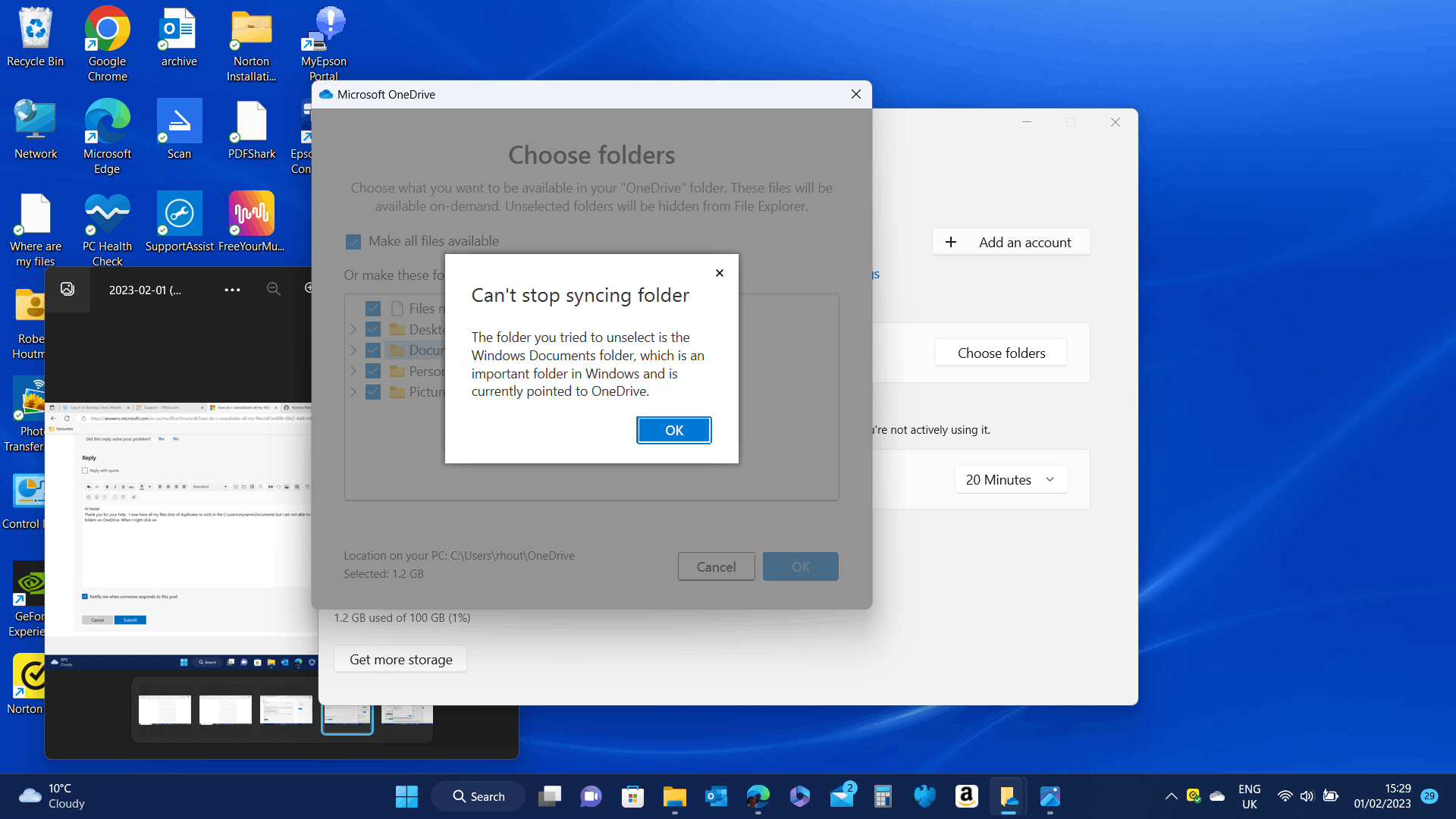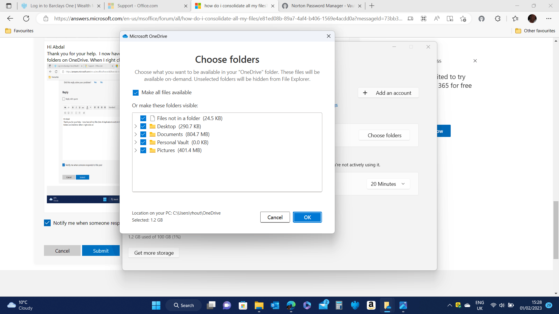 OneDrive will now sync your files in the selected folders to the cloud, and you can access them from any device with OneDrive installed.