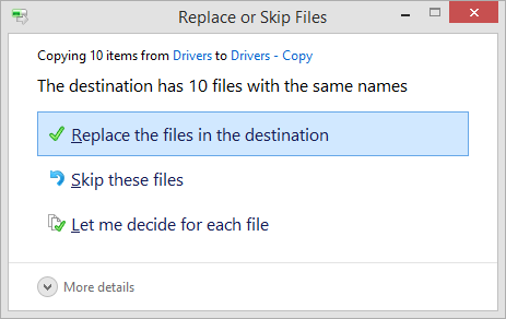 - What are you referring by "copy or paste & the dialog needs me to answer an overwrite"?