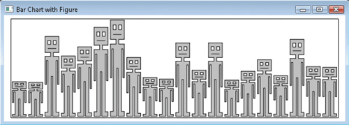 One of the great benefits that result from defining the bar chart visuals in XAML is the ease of replacing the bar with some other type of graphic, or of coloring the Rectangle with an image brush or drawing brush. Suppose the Doodad is actually a toy robot and you want to use a graphical representation of that toy in the bar chart. Figure 6 shows a DataTemplate containing a Path with a simple figure defined by coordinates between 0 and 1. A ScaleTransform gives each of these figures a uniform width. The horizontal scaling is bound to the BaseCost property. The result is shown in Figure 7.