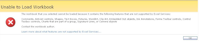 The workbook that you selected cannot be loaded because it contains the following features that are not supported by Excel Services: