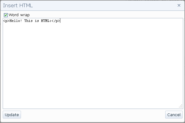 You see where the </p> is? Careful, we don't want the <p>! After that </p> is where we put our code block. So just paste, press 'Update,' and you should see your code block. Ta-Da!