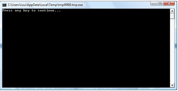 Waits for user input before returning (but there is no ‘Press Any Key’ message).