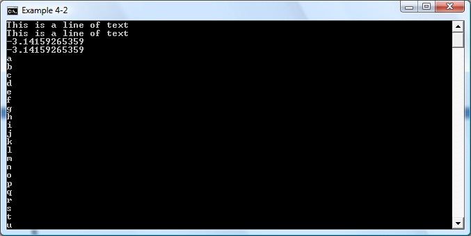 Now, the program is waiting for individual keystrokes. Type some. Notice there is no need to press <Enter> after the keystrokes. With each keystroke, the program will write out what you typed: