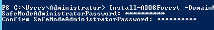 - Once the role is instealled, you are ready to create the new forest. Use this command to configure the new forest