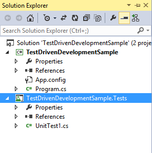 You will see the Test Project in the Solution Explorer:
