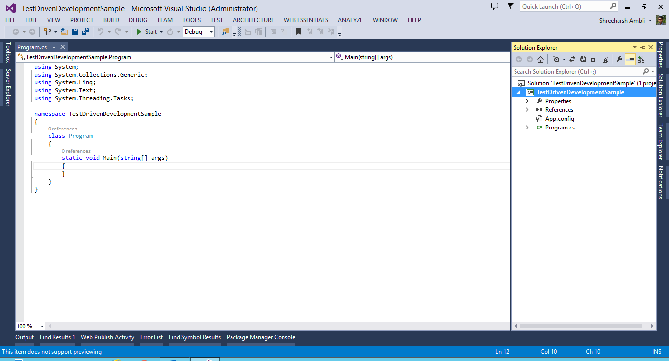 Test Driven Development (TDD) is highly recommended approach to software development. In TDD, we first write unit tests, generate skeleton code so that the solution builds. Obviously all tests will fail initially since we have no functional code in place as yet!