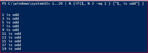 1..20 | % {if($_ % 2 -eq 1 ) {"$_ is odd"} }