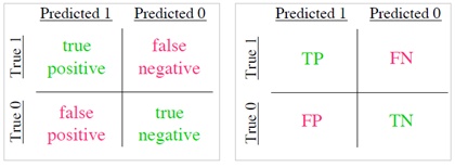 Where, TP=True Positive, TN=True Negative, FP=False Positive, FN=False Negative