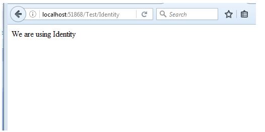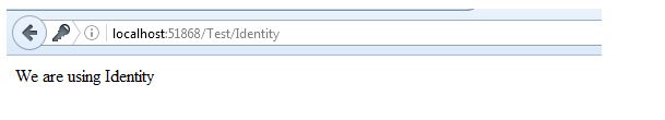If do not need identity for particular action method, we can disable using “AllowAnonymous” attribute. Now run “http://localhost:51868/Test/NonIdentiy��� URL does not redirect to login page, it directly run given URL because we use AllowAnonymous attribute.