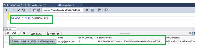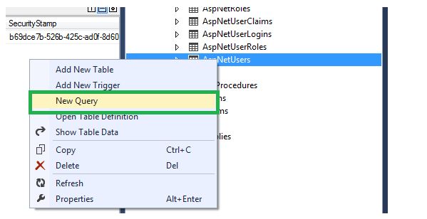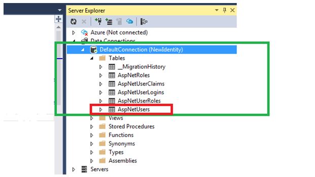 In server explore, under table folder we can see all tables as well as View, Store Procedures and other needed folders. “AspNetUsers” table is a main table that our credential store in the “AspNetUser” table.