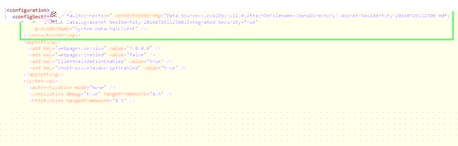 When we create identity in ASP.NET MVC database and database connection automatically will be create and store our credential. We can see the database connection in “Web.config” at connectionString tag.