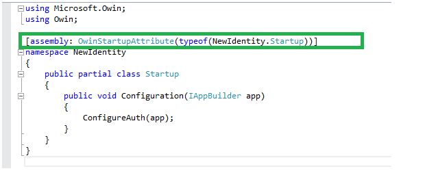 After opening project, click “Startup.cs” in solution explore and we can see starting page where OWIN assembly starts.