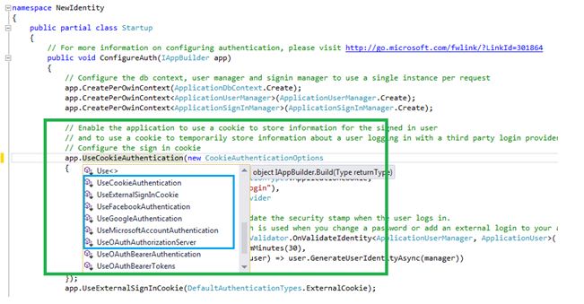 We can see different type of authentication in OWIN above marked part of image. When use OWIN identity code generated automatically. Developer need not write much code.