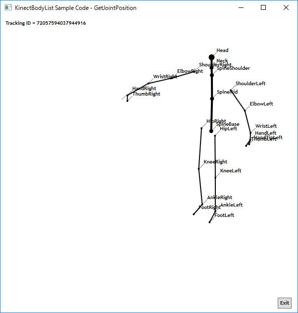 pos["W"] = cos (θ / 2). - GetJointPosition - returns camera space position pos["X"], pos["Y"], pos["Z"] for each joint in meters.