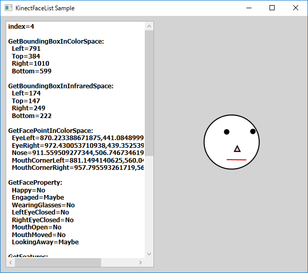 - GetFacePointInColorSpace - returns pos["X"] and pos["y"] for each point in face.