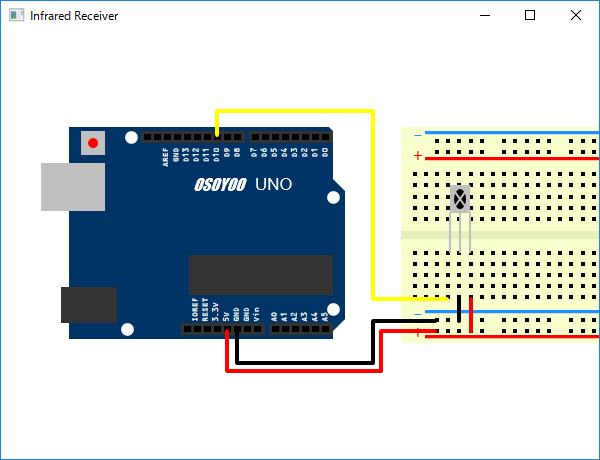 Assemble the Arduino circuit as follows. This circuit is for infrared receiver.