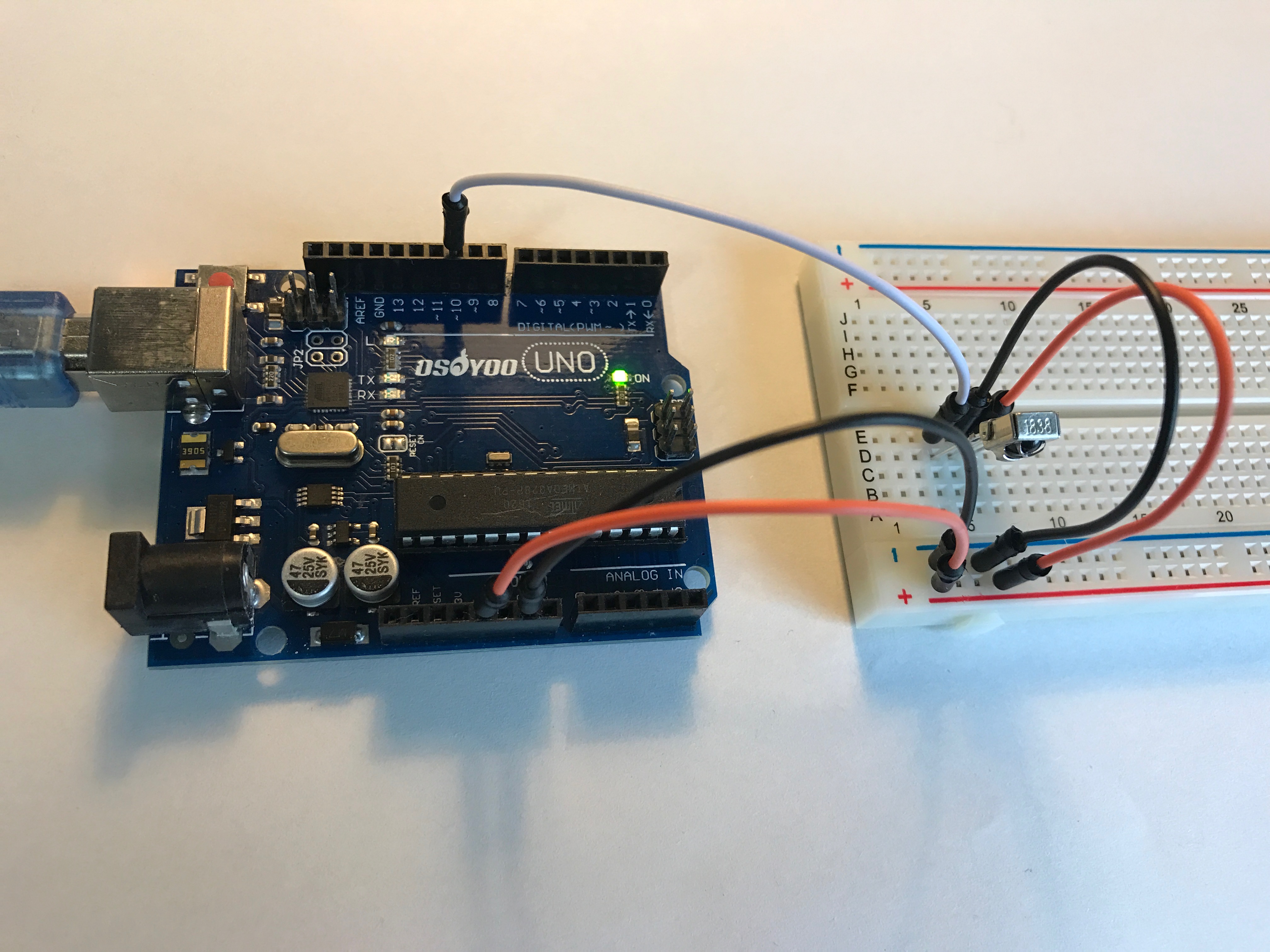 Connect the Arduino to the PC with USB cable. LED labeled ON on the Arduino board will be on.