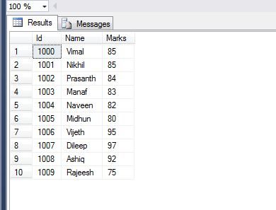 INSERT [dbo].[Table_MarkList] ([Id], [Name], [Marks]) VALUES (1000, N'Vimal', 85)