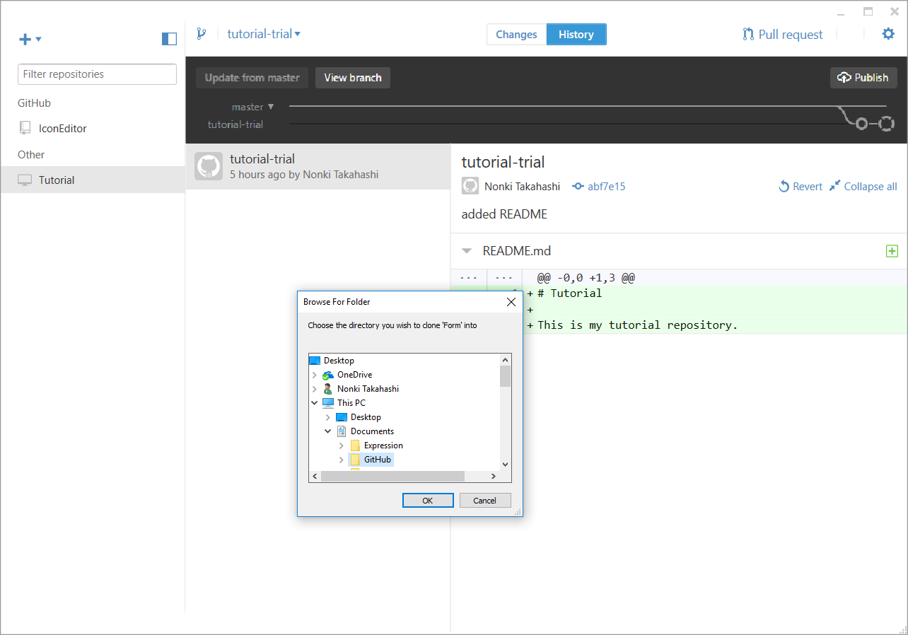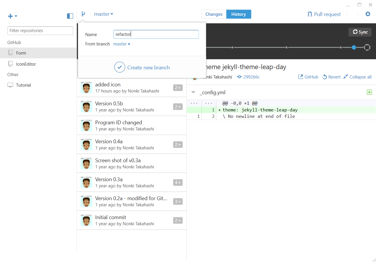 To push is to copy the modification to the online repository as a branch**. ** Click [Publish] button.