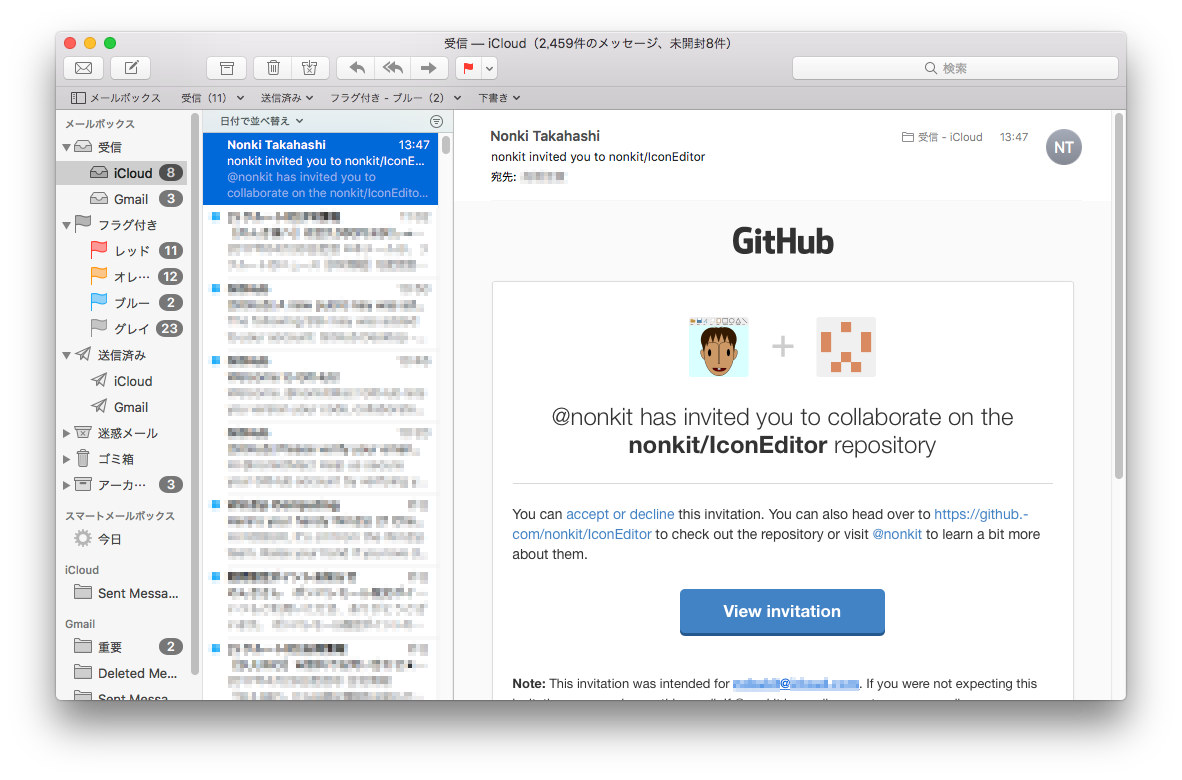 An email titled "<owner> invited you to <owner>/<repository>" will be sent if the owner set the account as a collaborator. Click [View Invitation] to see the invitation.