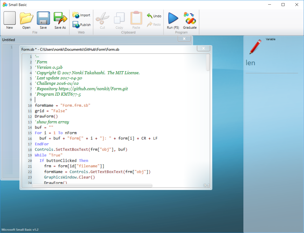 This article illustrates how to download Small Basic source from GitHub, revise the program in local with GitHub Desktop, and publish the revised version as a candidate.