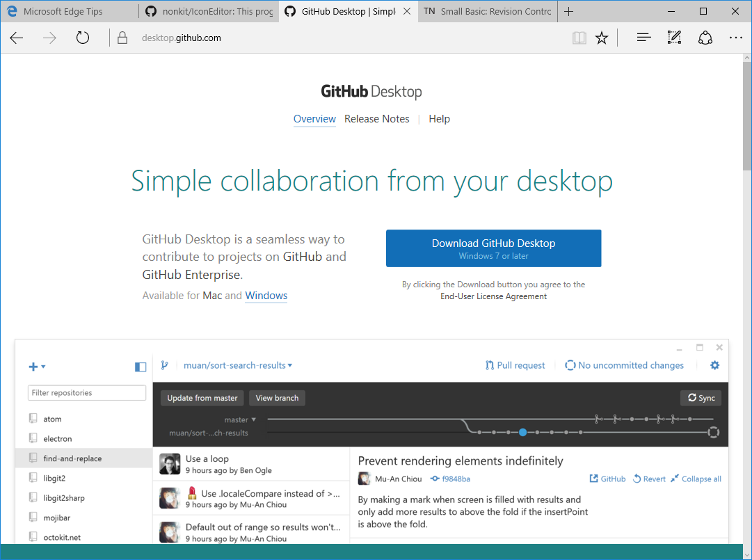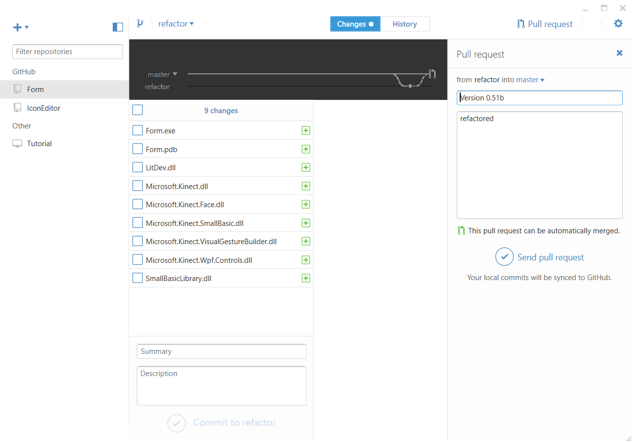 This article is about revision control with GitHub Desktop and GitHub for Microsoft Small Basic programming language. And also revised version of Small Basic: Revision Control - which is talked about Git GUI and CodePlex. Note that CodePlex will shutdown on December 15, 2017.