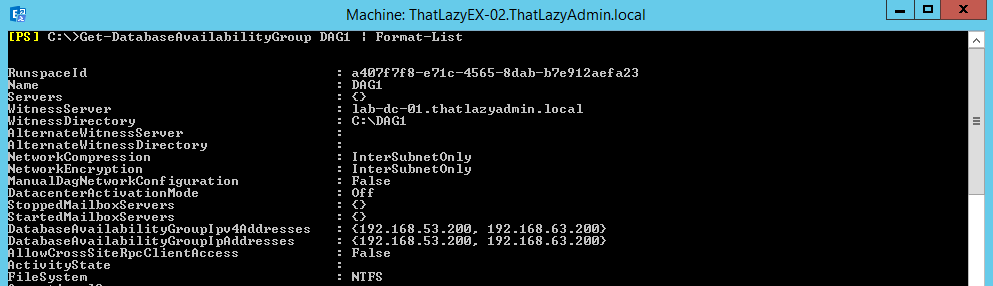 1.Get-DatabaseAvailabilityGroup DAG1 | Format-List