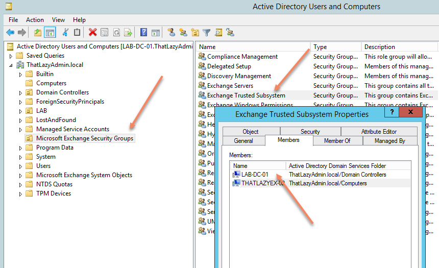 Open AD Users and Computers Navigate to Exchange Security Groups and Selected "Exchange Trusted Subsystem". Click on Members and Add the Witness Server as a Member to the Group.