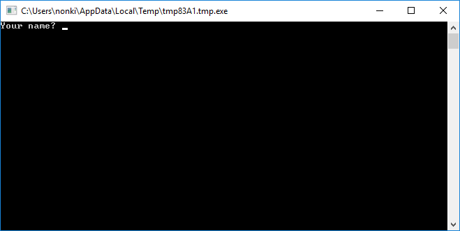 The text window is an character-based user interface (CUI) for Small Basic. Following one line program shows the text "Hello World" to the text window.