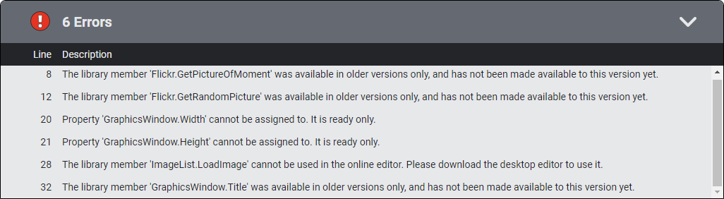 This article is about errors in the Microsoft Small Basic program language, especially for Small Basic Online (SBO). If you know other errors, please add them to this article.