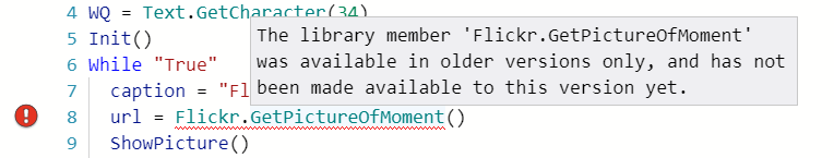 The library member 'xxx' was available in older versions only, and has not been made available to this version yet.