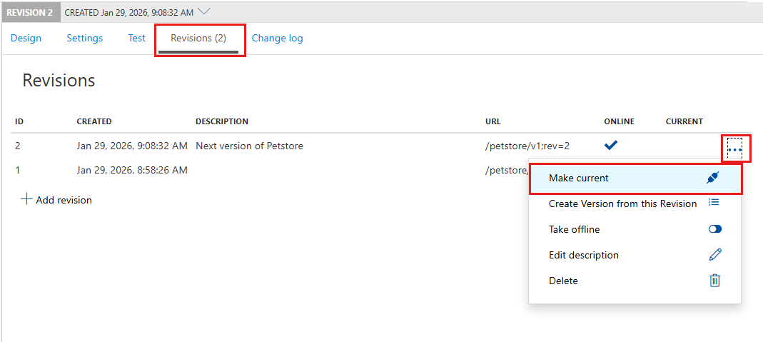 In Azure API Management, use revisions to make nonbreaking API changes. You can model and test changes safely. When ready, make your revision current and replace the current API.