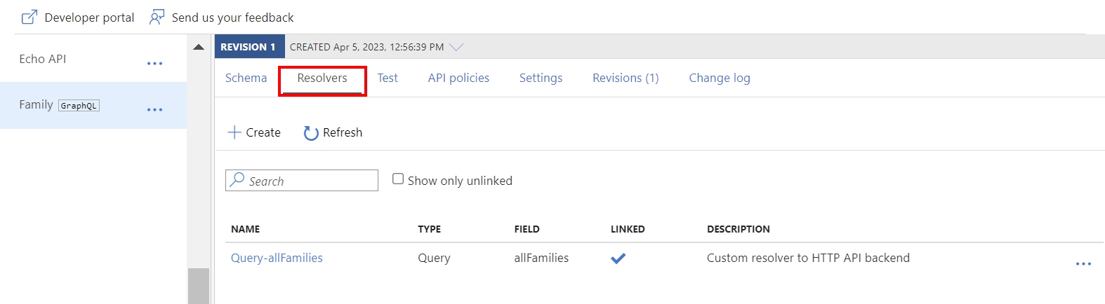You can list and manage the resolvers for a GraphQL API on the API's Resolvers tab.