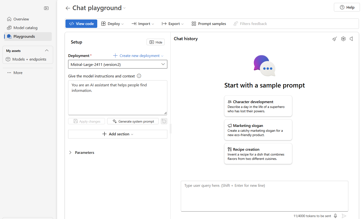 From the list of deployments, select the Llama-3.2-90B-Vision-Instruct deployment to open up the playground page.