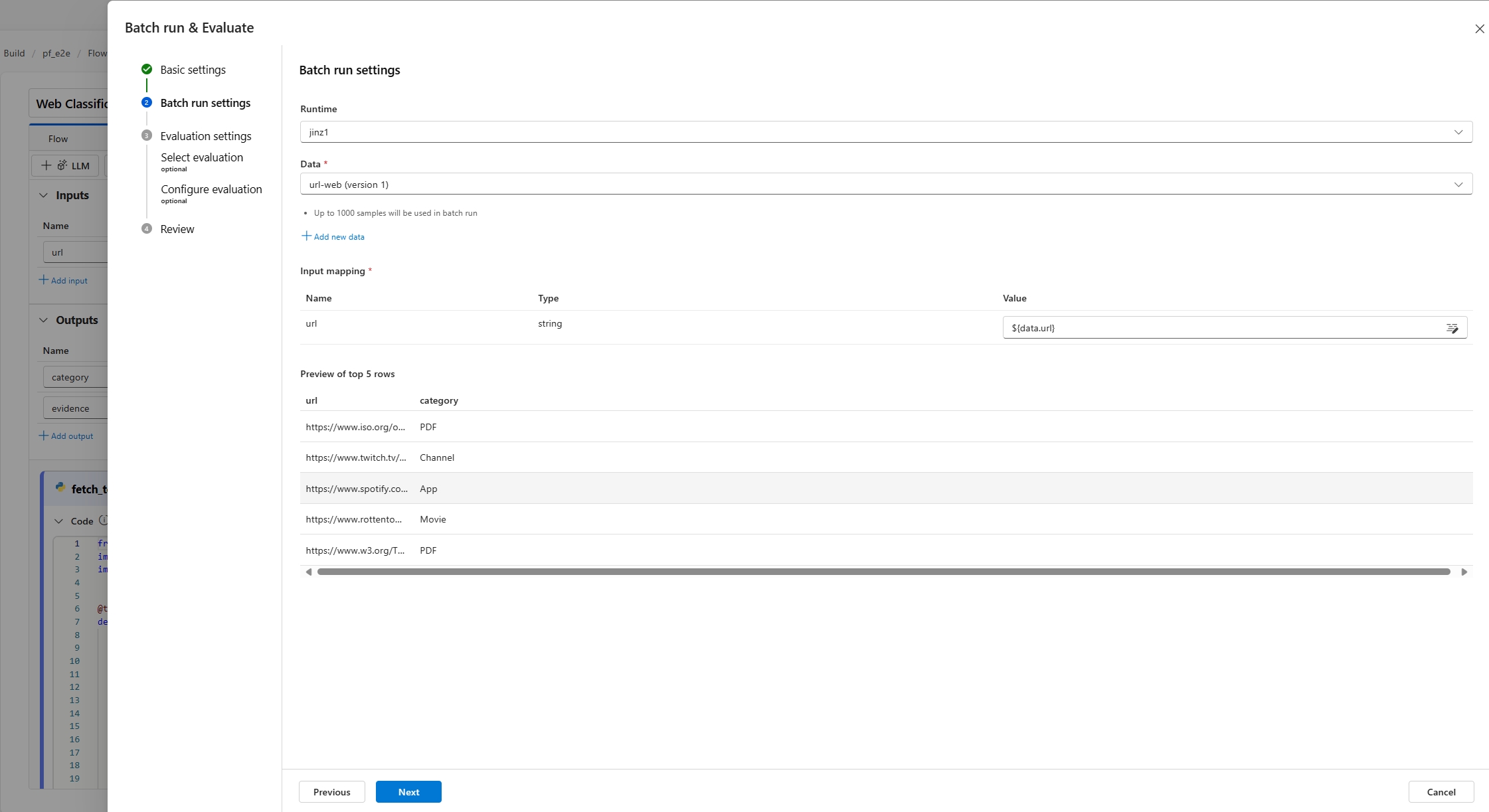 - Submit a batch run and use an evaluation method