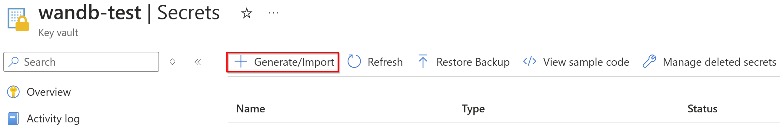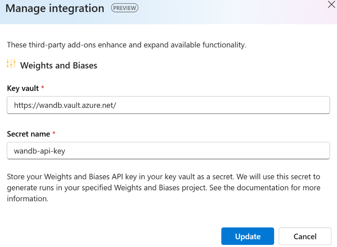 Add your Weights & Biases API key as a Secret to your Azure Key Vault