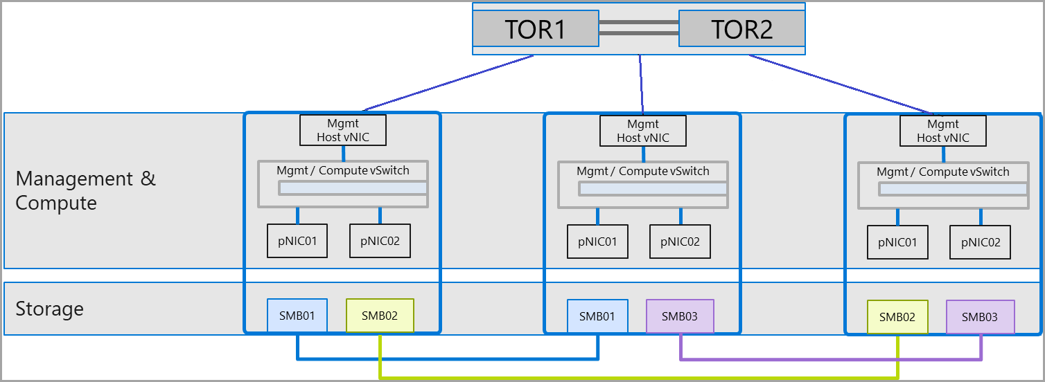 - Includes management (PowerShell, Windows Admin Center), compute (VM), and inter-site stretched cluster traffic.