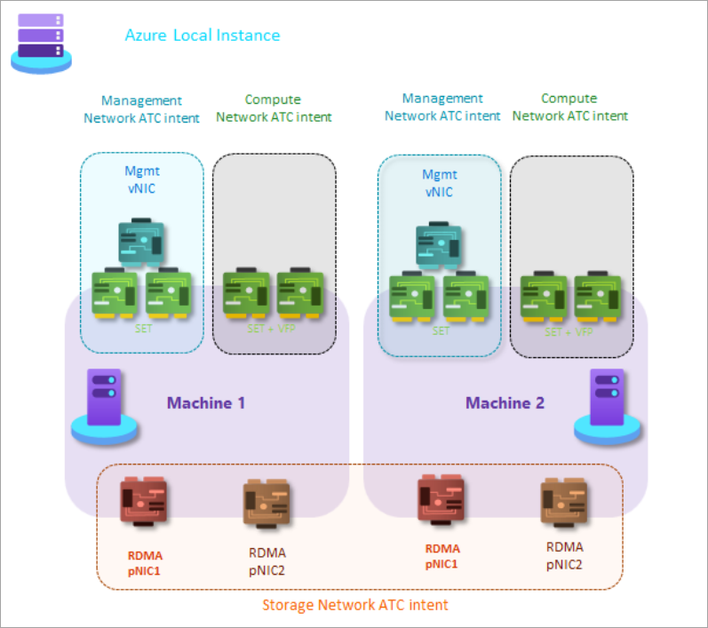 Use this pattern with switched or switchless storage connectivity for up to four-node Azure Local deployments. Use only storage switched connectivity for deployments with five or more nodes.