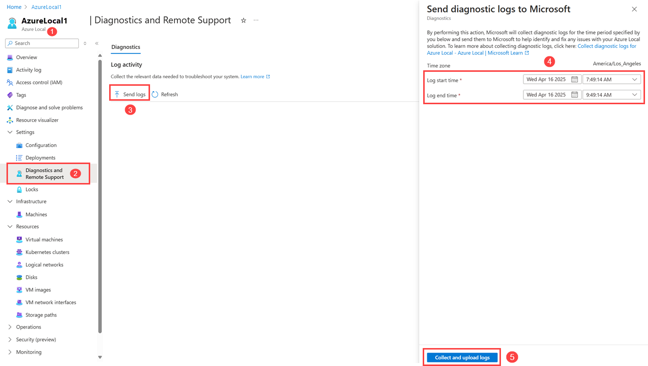 To identify and fix issues with your Azure Local solution, you can collect and send diagnostic logs to Microsoft using one of the following methods: