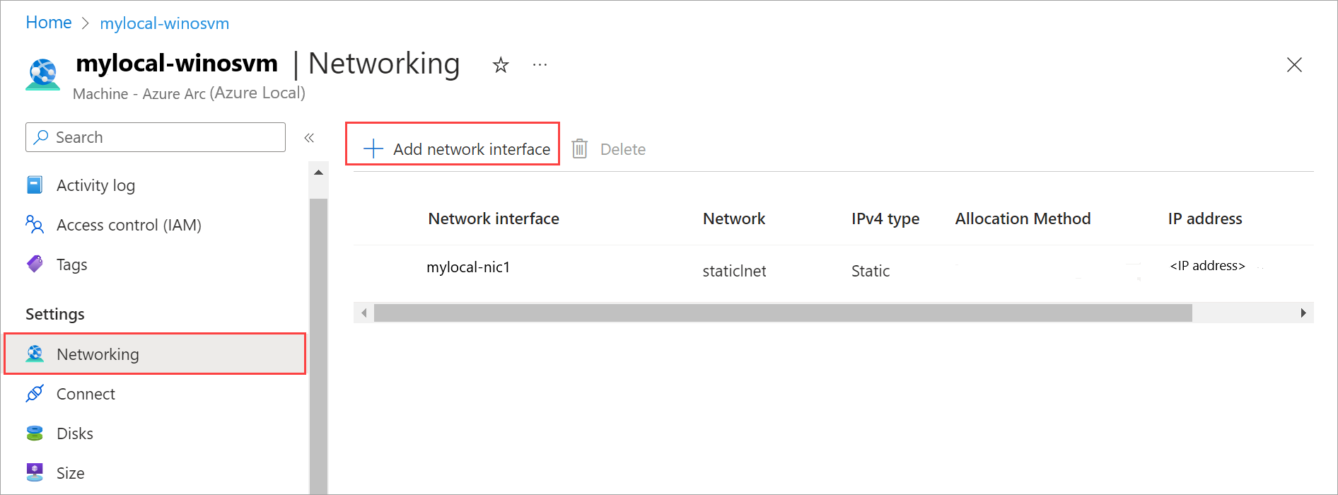 Go to Networking. On the command bar, select + Add network interface.