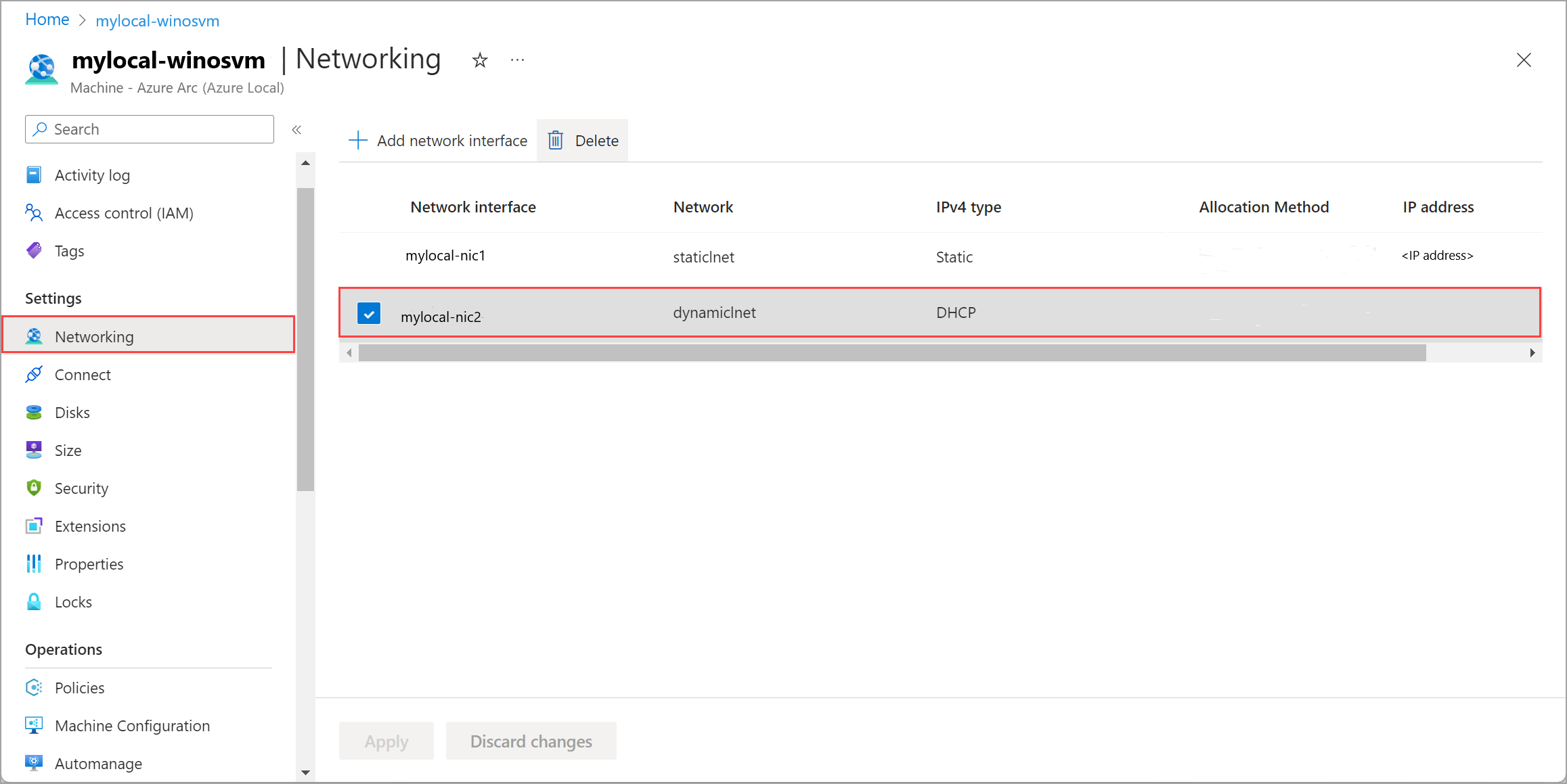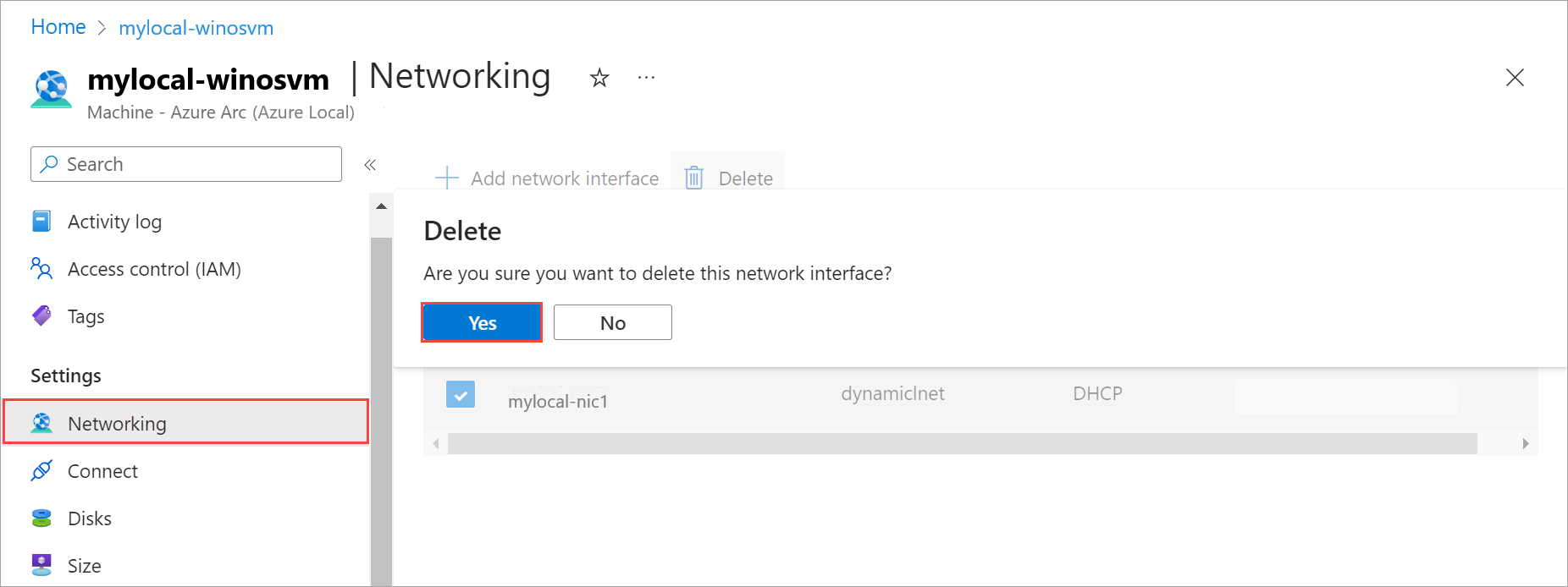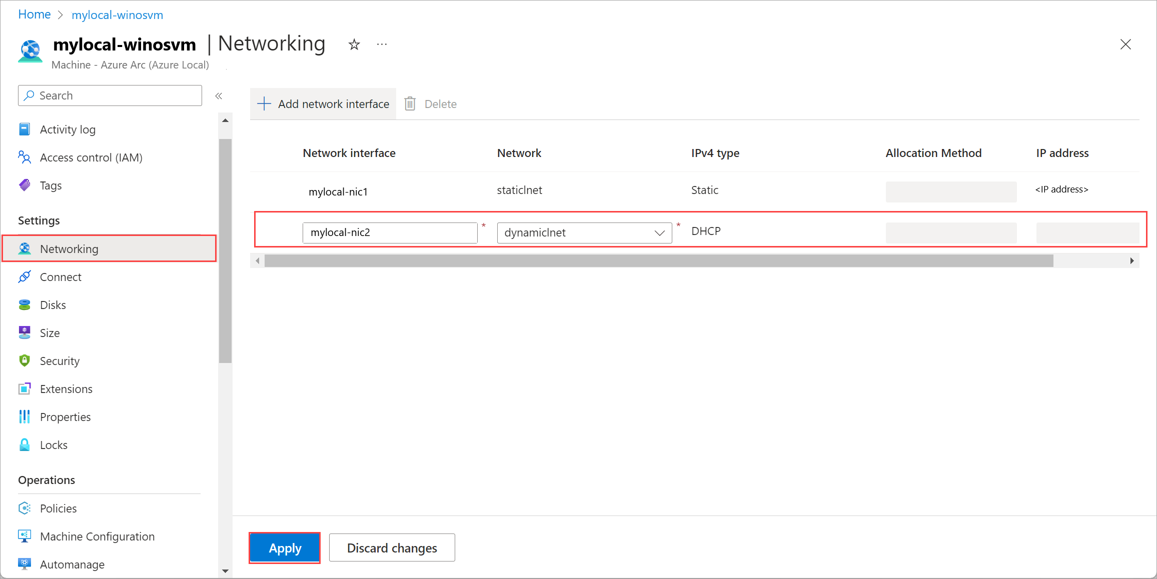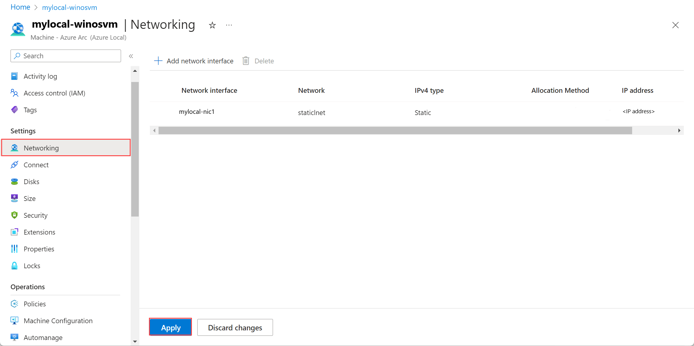 Select Apply to apply the changes. The network interface is dissociated from the Azure Local VM.