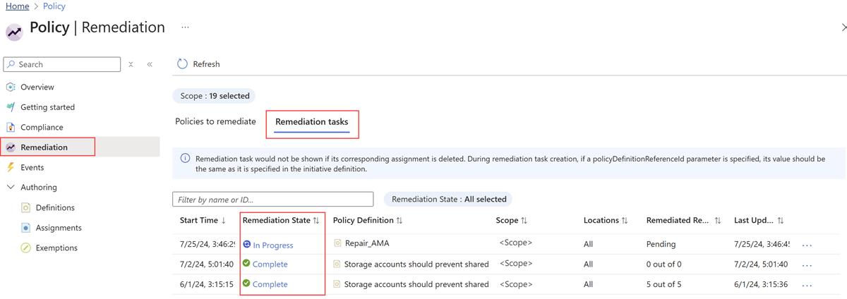 For more information about remediation, see Remediate non-compliant resources with Azure Policy.