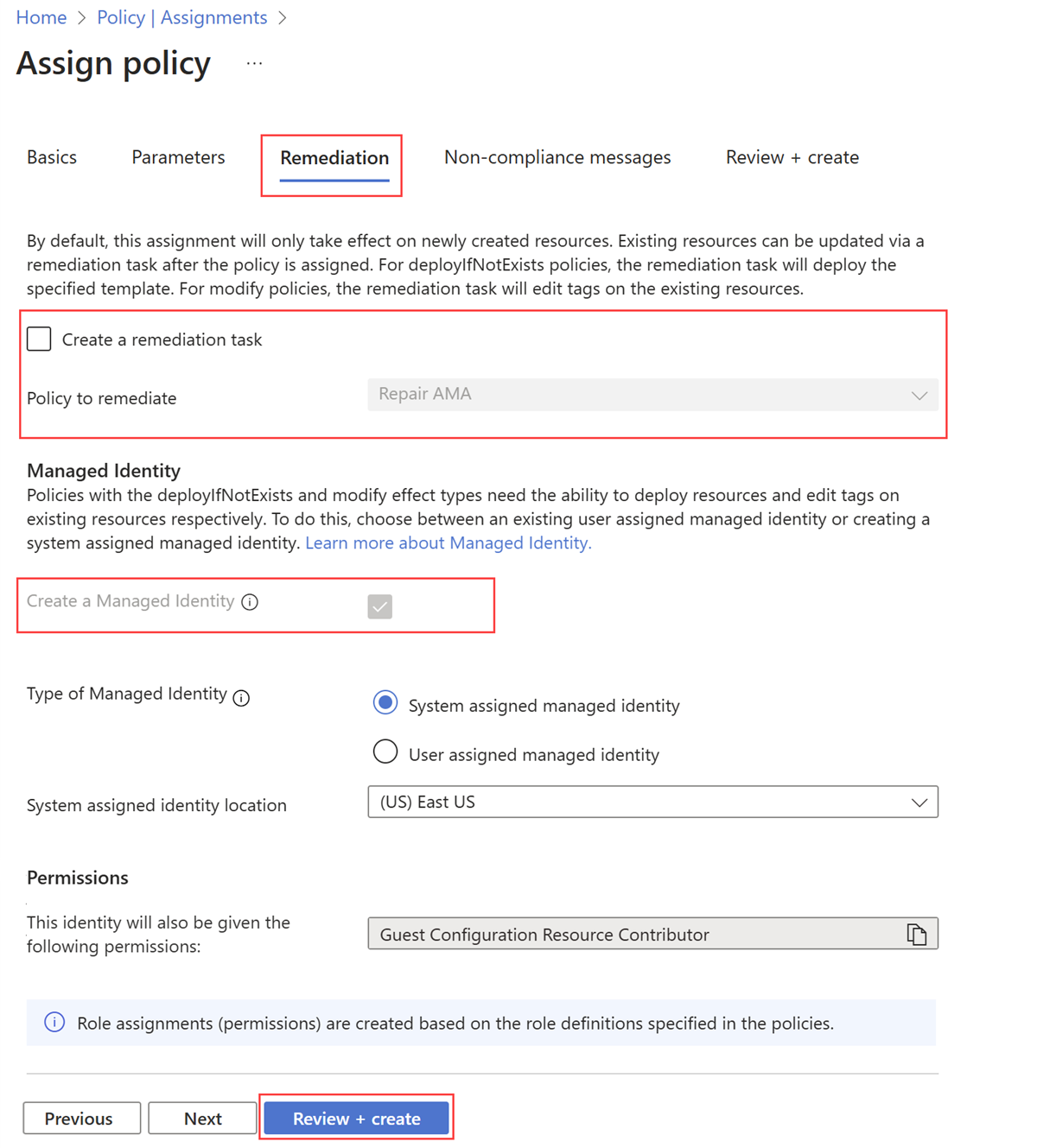 For more information about remediation, see Remediate non-compliant resources with Azure Policy.